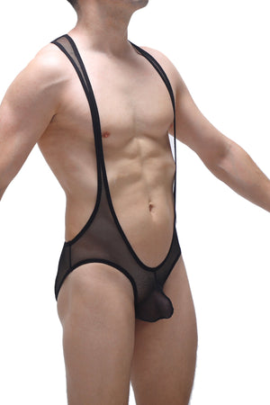 Sheer underwear open on the torso, revealing the back and open on the buttocks. Nylon on the upper back.