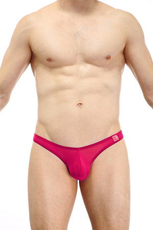Sheer thong in fine fuchsia mesh with a beautiful, voluminous front pocket.