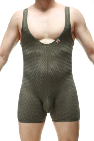 Confortable et super sexy body vert foncé bien bas sur le torse. Matière légèrement ajourée qui fait comme une seconde peau.