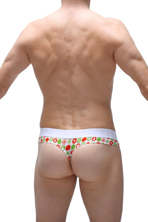 String ouvert à l'avant avec cockring en métal. Imprimé de noël pour célébrer les fêtes comme il se doit.