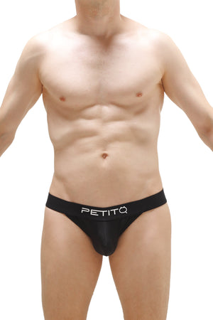 String à la poche en nylon noir avec à l'arrière deux élastiques à placer entre les fesses.
